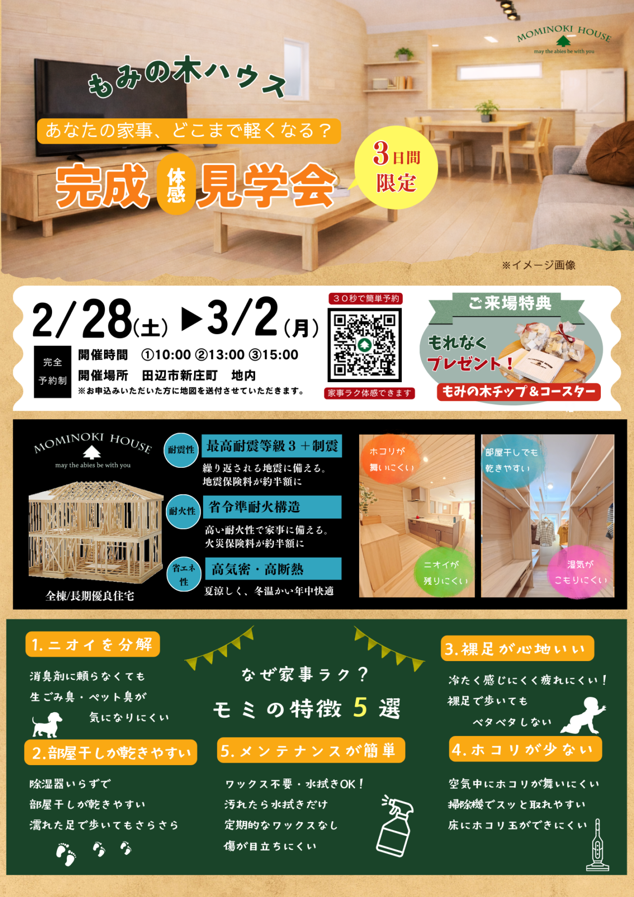 もみの木ハウス完成(体感)見学会を3日間限定で開催させていただきます。